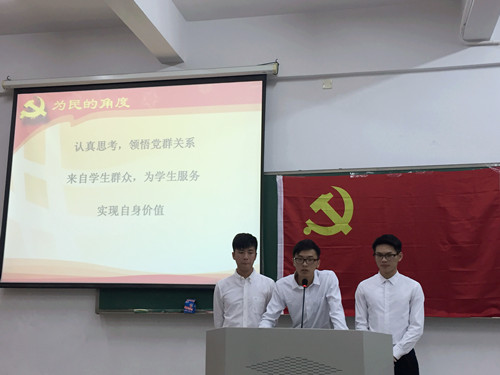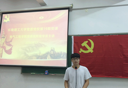 2016年4月17日晚七时,公司第十九期党课培训班伟德国际victor1946院级学员主讲活动在A3-109室举行。公司员工第一党支部书记张纯子老师、团委书记戴杰老师、团委副书记伏莹老师作为评委莅临活动现场,本次活动由余路城主持,公司十九期党课培训班公司党课1班、2班全体学员出席此次活动。