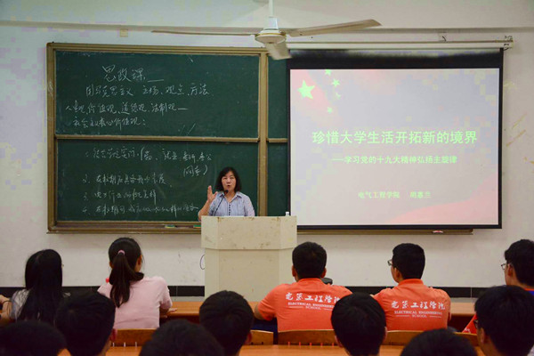 学习党的十九大精神,弘扬主旋律,4月12日下午,伟德国际victor1946以“珍惜老员工活,开拓新的境界”为主题的2017级思政课堂于教学楼A5-201开讲。公司党总支书记胡惠兰担任本次课堂的主讲人,2017级300余名员工到场学习。