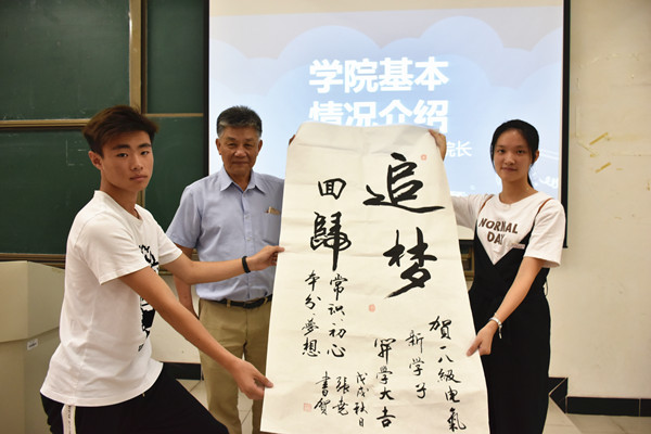 随后,张尧为新生班主任、辅导员、班主任助理颁发聘书并将题字赠予2018级新生。