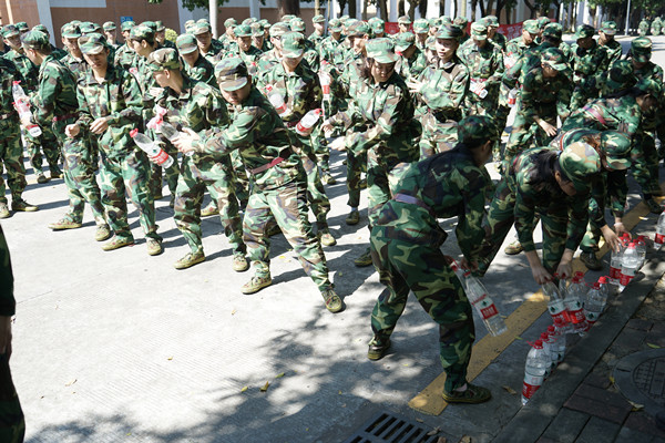 在训练休息之余,学子们开展了有趣放松活动,增加彼此的默契。比如传递水瓶、唱军歌...等活动。在传递水杯的过程,学子们安静地按队列将水瓶依次往下传,没有进行语言交流,便能快速的将水瓶依次递下去,充分体现学子们之间彼此熟悉、彼此了解的深厚友谊。