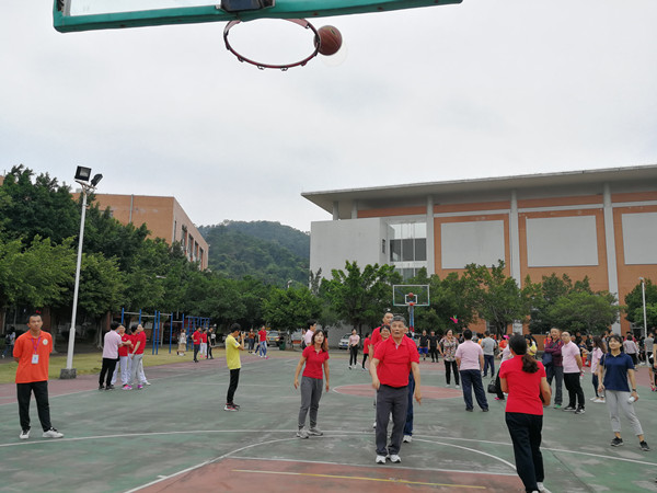 趣味比赛设有立定投篮、六人七足、漂洋过海、团体飞镖赛等项目。立定投篮,需要上下肢动作协调配合。教职工们按照平时投篮姿势,双膝微弓,背斜微倾,双手紧握篮球,调整好姿势后,静默中的一个爆发,篮球脱手于空中划出一道弧线,顺利入网。在这过程中,教职工们虽然没有百发百中的精准度,但是在投篮失败后,都迅速调整状态,以良好的心态完成比赛,最终取得了不错的成绩。