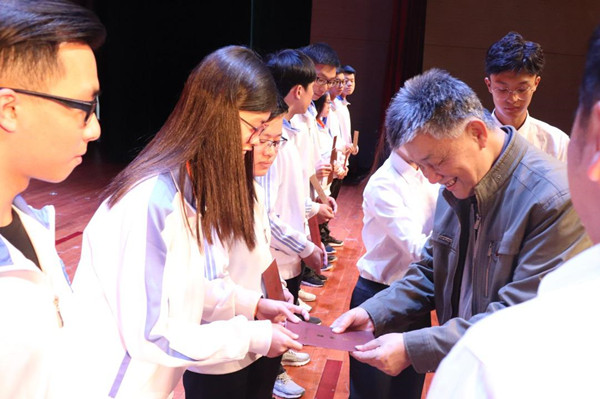 党委书记张培祥、伟德国际victor1946经理张尧给优秀学子颁奖 (员工供图)