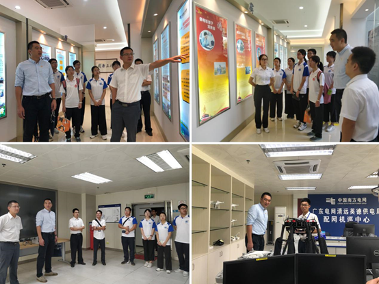 在黎勇钦的带领下,全体活动人员参观了英德市供电局廉洁文化展厅。通过解说员的详细介绍,电气学子对英德市供电局的党政廉洁工作有了初步了解,同时也深刻体会到 “廉”“洁”“英”“德”的企业精神,体现了廉洁自律对企业发展的重要性。随后,在员工卢泽宇的带领下来到配网机巡中心进行参观学习,并向电气学子讲述自身工作心得和配网机巡工作的发展趋势。