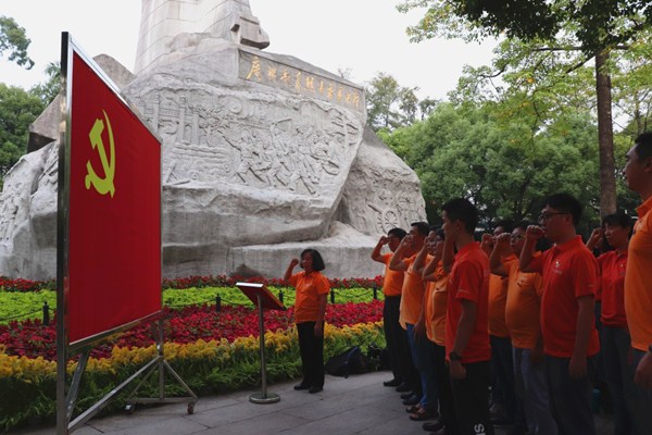 下午,全体党员抵达广州起义烈士陵园。伟德国际victor1946员工第二党支部书记林斌向在场党员讲述了广州起义的经过及意义,并回顾了张太雷、叶挺、叶剑英等革命烈士的不朽事迹。他讲道,“广州起义力量虽较弱,时间虽较短,意义却十分重大”,希望各位党员“不忘初心,牢记使命,继承先烈传统,发扬爱国主义精神”,立足岗位,在工作、学习中发挥党员的模范作用,传播正能量。