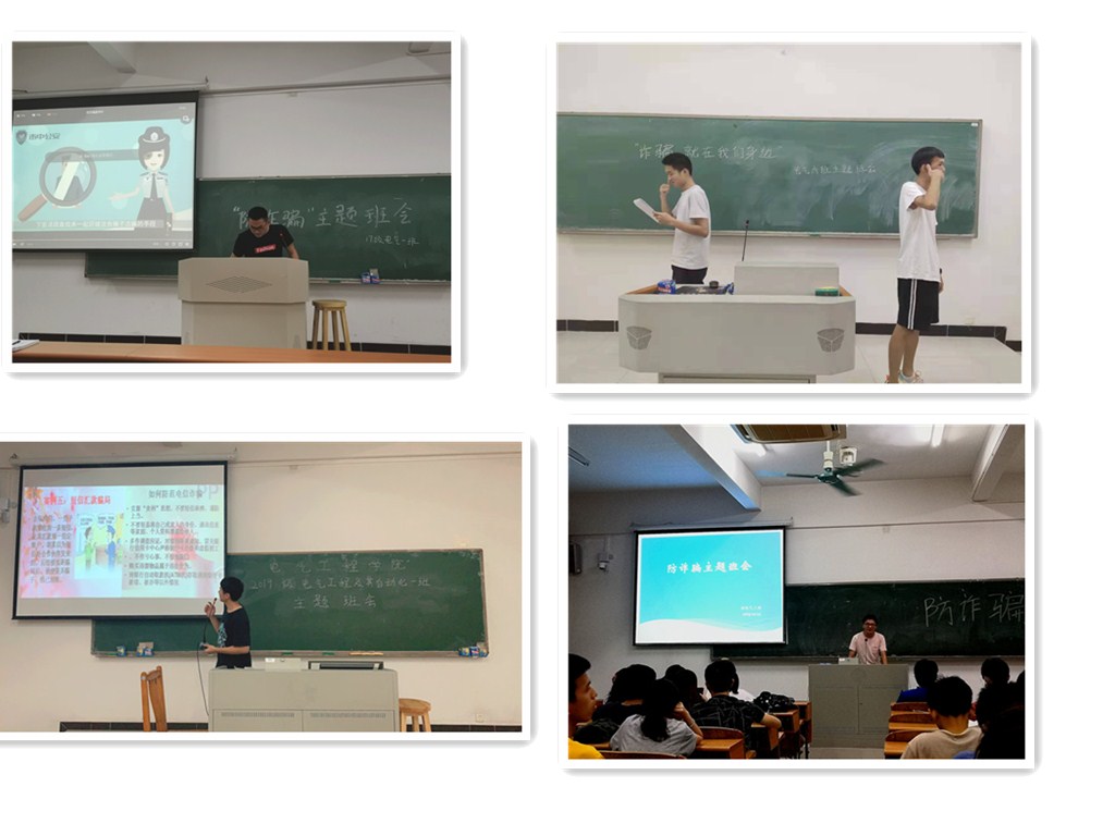 本次活动是以各个班级开展主题班会的形式进行。其中,2016级电气二班班长以公司所发生真实案例出发讲解诈骗的整个过程,同时结合当前毕业生实际,让同学们在选择工作时一定要留意好相关信息,时刻保持警惕,防止诈骗行为在我们的身边发生。