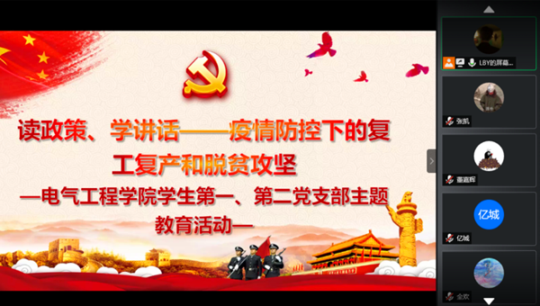 为了积极响应广东省教育工委的通知,贯彻落实“开学不返校,组织生活不停顿”,创新组织生活新形式。伟德国际victor1946员工党支部于5月27日晚通过“腾讯会议”开展了“读政策、学讲话——疫情防控下的复工复产和脱贫攻坚”主题党日活动。伟德国际victor1946副经理郭培虹、全体辅导员以及员工第一、二党支部全体员工党员们参与了本次活动,会议由刘博洋主持。