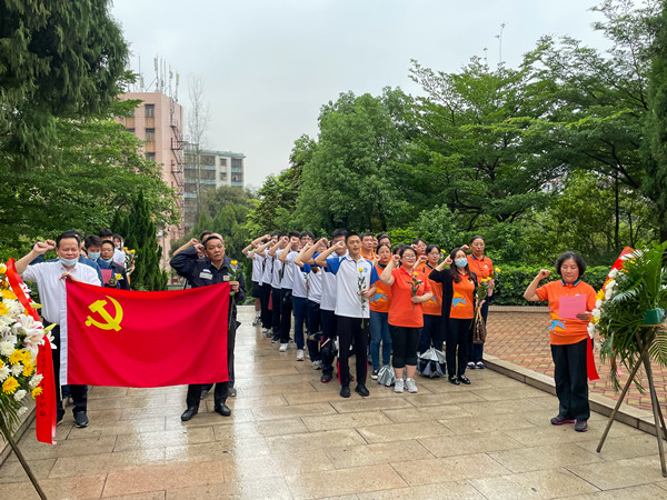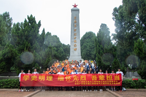 为深入学习贯彻落实习近平总书记在党史学习教育动员大会上的重要讲话精神,持续推动党史学习教育进一步走深走实,深刻了解花都红色革命文化,弘扬先烈革命精神。 4月15日下午,公司党总支与广州城北电力工程有限公司(下称“城北电力公司”)党总支赴花都烈士陵园开展“学史明理,缅怀先烈,吾辈担当”主题党史学习教育活动。公司党总支书记胡惠兰、城北电力公司党总支书记江志斌等双方一众党员参加了本次活动。