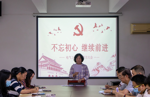 会上,胡惠兰带领大家集中学习了《中国共产党简史》、《中国共产党普通高校基层组织工作条例》、《为人民服务》等部分内容,引导大家牢固树立正确党史观,积极投身高校教育工作,为党育人,为国育才。