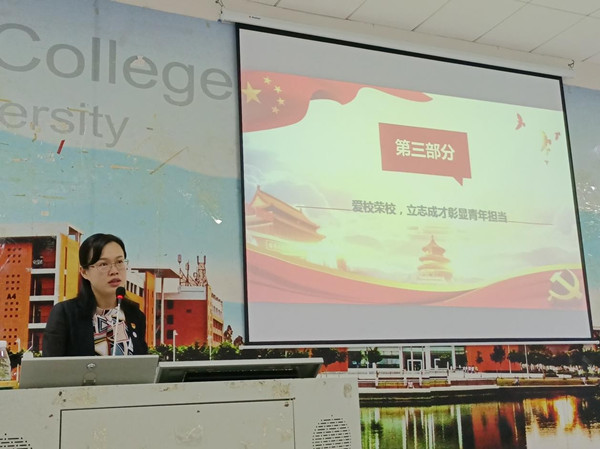 接着,她结合社会主义革命和建设时期、改革开放时期和中国特色社会主义新时代时期的建设历程与成就,阐述了中国共产党秉持为中国人民谋幸福的初心、为中华民族谋复兴的使命,不畏艰难险阻,不惧流血牺牲,团结带领全国各族人民浴血奋斗、发愤图强、改革开放,中华民族迎来了从站起来、富起来到强起来的伟大飞跃。“历史是最好的教科书,回顾过去才能走好明天的路。在实现中华民族伟大复兴的征程中,青年人是见证者、参与者,更应是奋斗者,大家要将个人发展梦想与国家民族前途深度融合,坚定理想信念,担负起新的时代使命,为实现中华民族伟大复兴贡献力量。”