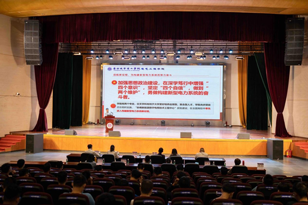 接着,他从“加强思想政治建设,在深学笃行中增强‘四个意识’,坚定‘四个自信’,做到‘两个维护’,勇做构建新型电力系统的奋斗者”、“深化理论武装,在深学笃行中自觉运用马克思主义根本立场、基本观点和科学方法,指导实践”、“实事求是,找准就业方向,找到适合自己的工作”、“戒除浮躁,从容工作,快乐生活,乐于奋斗,乐于奉献”四个方面为即将走上工作岗位的同学们提出了希望。“公司光伏项目正在规划实施,‘协调新能源的数字电网技术工程研究中心’获批建设,公司已在全国高校中率先进入构建新型电力系统新征程,积极稳妥助力国家迈向2030碳达峰、2060实现碳中和”。他建议同学们不仅要将毕业设计和毕业论文与企业工作紧密结合,还要把自己的职业生涯发展与构建新型电力系统有机结合,放眼长远,科学谋划,扬长避短,在实践中注重针对性深入学习、提升自己,同时也要创造性开展工作,潜下心来,钻研业务,充分发挥潜力潜能。“希望大家尽快找到适合自己的工作,并尽快进入角色、发挥作用,为构建新型电力系统作出应有的奉献!”