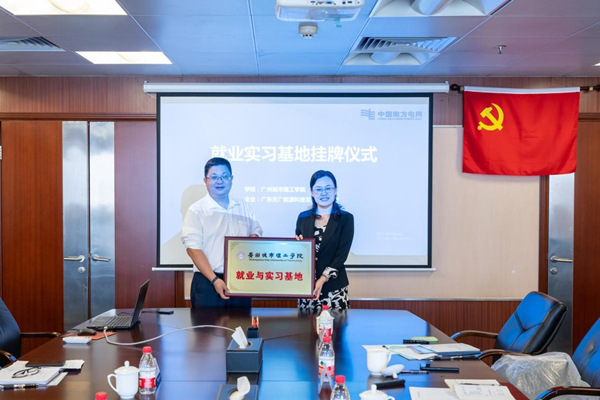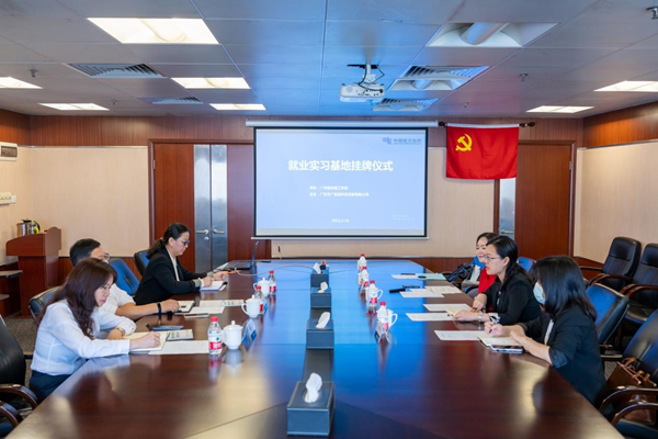 5月18日上午,伟德国际victor1946书记张郡,副经理沈娜、辅导员等一行4人前往广州天广能源科技发展有限公司洽谈交流并举行就业实习基地授牌仪式。