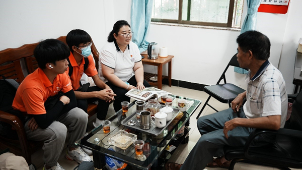 与港头村村务监督委员会主任曾昭深座谈(郭梓康 摄)