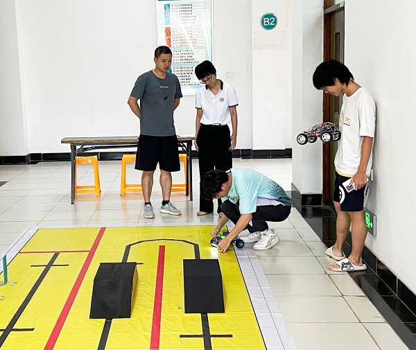 队员在全地形越障排爆小车的比赛中进行现场调试(林世杰 供)