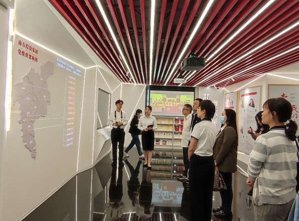 符红勋一行依次参观了中国南方电网数字电网体验中心(广州)与“数智南投,碳路未来”南方投资集团企业展厅,全方位地感受南方电网、南方投资集团在数字电网、新型电力系统、新型能源体系建设等领域取得的成绩,还参观了南方投资集团“党建引领,融合发展”党建专区,通过党组织架构图了解南方投资集团的组织构成。他山之石,可以攻玉。参观过程中公司党总支认真学习南方投资集团“五强化五提升”党建工作机制、“两纵四横”党建帮扶指导机制以及“五必谈五融入四盯紧”廉洁文化建设机制,积极探索数字党建新模式,推动党建与校企合作深度融合。