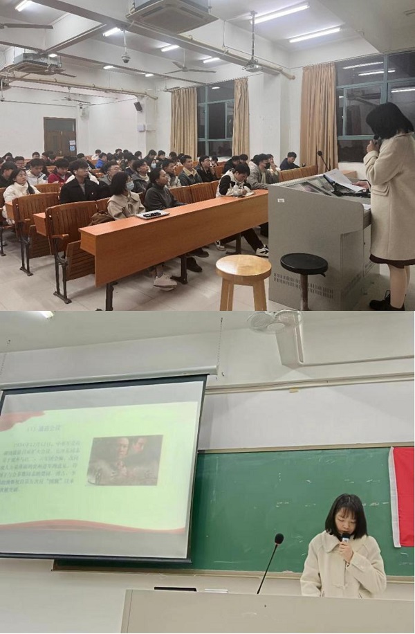 她提到,我们必须学好党史,铭记党的历程,担当起为民职责,汲取精神营养,切实增强精神力量,奋进时代新征程。她激励同学们,我们只有通过不断地自我革命,始终做到自我净化、自我完善、自我革新、自我提高,才能使我们的党永不变质、永不变色、永不变味。专题宣讲由点到面,由浅入深,让同学们学有所获。