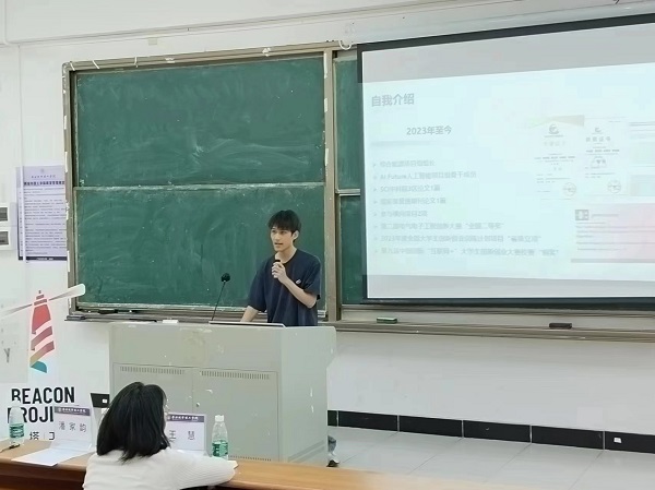 分享环节上,林国武结合参加第二届高校电气电子工程创新大赛的经历提出,想要打好一场比赛,就必须从心态上做好参赛准备、从行动上做好参赛安排。在有经验的老师和同学的指导下与团队成员做好配合,多次复盘和总结,有条不紊地推动项目的进程。最重要的是要保持自信、勇于尝试,要有坚持下去的决心。随后,李彤就自己参加第六届国际能源、电气与动力工程会议(CEEPE)的经历进行分享,并提出敢猜想、敢发问、敢学习、敢参与、敢落实的“五敢”建议,鼓励大家善于学习、勤于实践,不虚度大学时光。最后一位发言的胡立轩分享的则是参加中国创新创业成果交易会的心得。她认为光储热伏集成化温控系统这一成果得以落地、团队最终能够站在创交会的领奖台上,是所有人夜以继日、不懈努力的回报,并以“沉淀自己,顶峰相见”这八个字与在场者共勉。