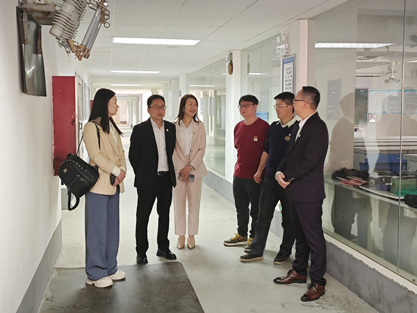 随后,郭新苗一行参观了电气工程专业实训室、新能源专业实训室和虚拟电力设计院,深入了解公司的教学科研条件和成果。