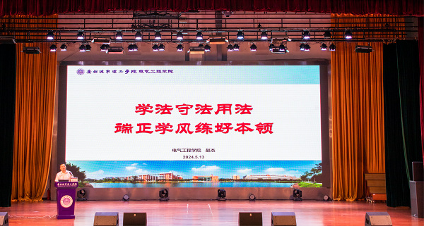 赵杰首先讲述了全面推进依法治国的重要意义,“以依法治国为切入点,扎实推进依法治校,补齐短板,修订有关规章制度并严格执行,为社会培养高质量的应用型人才。”从依法治国到依法治校,从公司的规章制度到员工的学习生活,他层层递进,结合通俗易懂的案例多维度强调“学法守法用法”的重要性。他指出,作为电气学子,除了学好法律法规外,还要学好《电力设施保护条例》、电力法、供用电规则等与本专业相关的规章制度。在之后的工作中,更应该善于利用法律条例来解决相关问题。