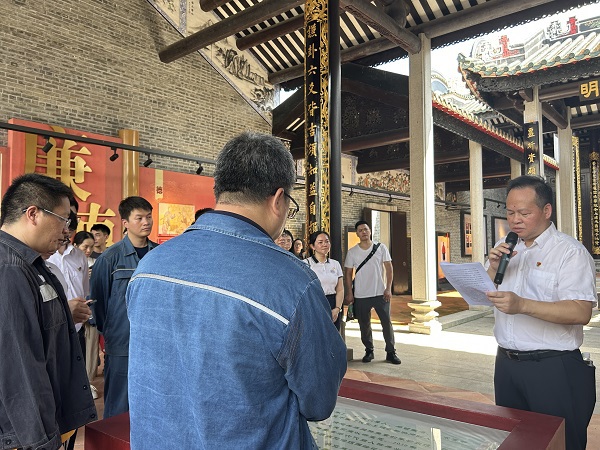 为推动党纪学习教育走深走实,加强党风廉政建设和党员干部的纪律意识,6月20日下午,公司党总支联合两办财务审计联合党支部、广州城北电力工程有限公司党总支前往光禄大夫家庙开展“学纪、知纪、明纪、守纪”党纪学习教育主题党日活动。广州城北电力工程有限公司党总支书记、总裁江志斌,党总支副书记、副总裁黎健生,副总裁欧登与公司党员;公司党委办公室/集团办公室主任、两办财务审计联合党支部书记张郡,公司党委办公室/集团办公室副主任黄海燕,财务处处长汤贺凤,审计处处长高峰及支部党员;公司党总支副书记符红勋、副经理沈娜,教师党员代表、员工党员代表参加了此次活动。