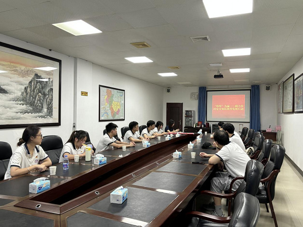次日上午,实践团队与当地政府进行座谈交流。望埠镇政府工作人员向团队成员介绍望埠镇的基本情况,并提出此次社会实践的具体需求。双方就安全知识教育主题进行详细交谈,进一步确定并完善接下来一周的实践计划与安排。