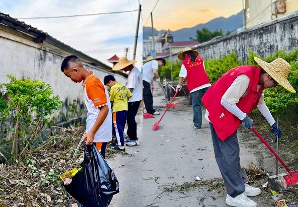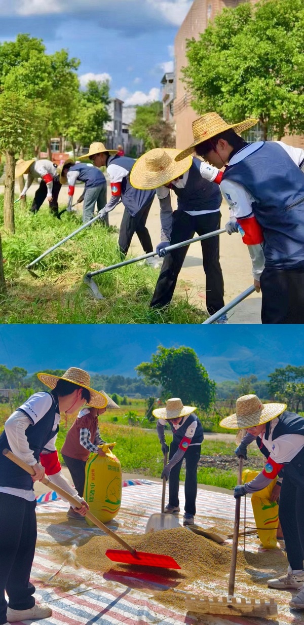 在感受了当地红色文化后,成员们更加积极地投身到下廖村的“护绿行动”中。在清理杂草和垃圾之余,成员们还帮助当地居民收晾晒过后的稻谷。“老员工们能够耐心地处理杂草和清理垃圾,也能够真心实意地帮助我们收稻谷,特别谢谢你们,为你们点赞!”当地居民对实践团的工作表示感谢。