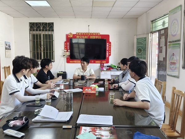 7月6日上午,实践团与文策村书记廖耀学开展座谈会,就本次实践活动的具体行动、实施细节等内容进行了商讨与确定。廖耀学提到,文策村近期栽植了1000多棵新树苗,希望实践团可以帮助进行树苗维护工作,为新树苗茁壮成长营造绿色环境,打造绿色乡村。