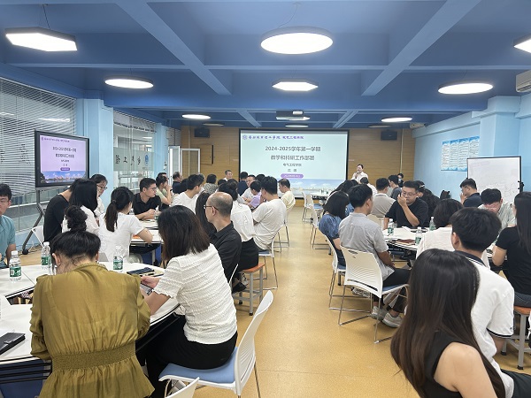 会议伊始,沈娜进行新学期教学和科研工作部署。在教师教学方面,她指出教师要主动应用新方法、新技术、新案例来丰富教学过程,严抓课堂纪律,提升课堂教学效果;同时要积极参与培训、申报科研项目及参加教学竞赛,以学促干、以赛提能。随后,她指出为培养适应新型配电网和新能源建设的专业人才,公司在人才培养方案、产教融合等方面进行了一系列调整与深化的举措。在科研工作方面,沈娜介绍了公司当前纵横向项目、省级重点项目、工程研究中心的开展情况,鼓励教师们再接再厉,争取高质量的科研成果。在国际化办学和交流方面,她表示公司后期将为员工开设双语课程,并承办国际学术会议,以加强专业建设、提高办学水平。沈娜强调,新学期将继续围绕合格评估持续推进教学资料整理、磨课工程等工作。