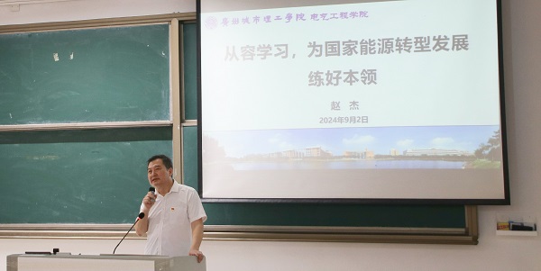 赵杰希望所有新生能保持积极心态,勤于思考,做好学习规划,养成良好的学习习惯,打牢专业基础,制订阶段性目标,从容学习、快乐生活。在大学四年里,明确自身目标,提前规划准备,积极参与项目实践,同时踊跃参与国际化学习,拓宽视野,练就过硬本领。“希望同学们端正学风、奋发图强,以习近平新时代中国特色社会主义思想为指导,热爱专业,学有所成,为建设国家新型能源体系贡献青春力量!”