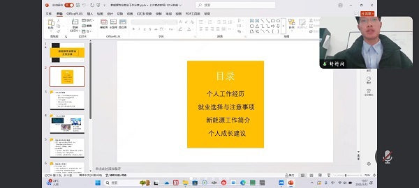 最后,沈娜进行总结讲话。她代表公司对两位优秀员工的分享表示感谢。沈娜希望毕业生们认真学习员工分享的求职技巧,主动分析行业趋势,充分挖掘自身优势,认真修改求职简历,制定阶段目标,为就业打下良好基础。本次分享会不仅为新能源科学与工程专业毕业生提供了宝贵的就业指导,而且也为毕业生求职与就业指明了方向。