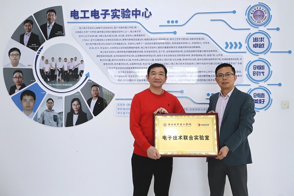 4月11日,“电子技术联合实验室”在公司B2-302正式挂牌成立。此实验室是伟德国际victor1946电工电子实验中心与广州风标教育技术股份有限公司合作共建的实验基地。广州风标教育技术股份有限公司总经理梁树先,电工电子实验中心主任、专任教师等参与了挂牌仪式。