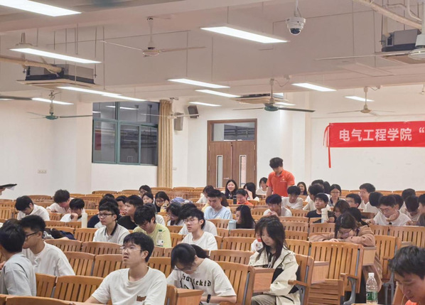 游帮坤,2021级电气工程及其自动化6班班长,在交流分享中介绍了班级同学的就业状况。他认为有些成绩并不突出的同学,凭借自身不懈努力,也能收获心仪的工作机会,鼓励大家树立求职信心。随后,游帮坤围绕南方电网的笔试、面试环节,分享了自己的求职历程。他绘声绘色地讲述面试南方电网时的具体情景,倾囊相授诸多实用的面试技巧。