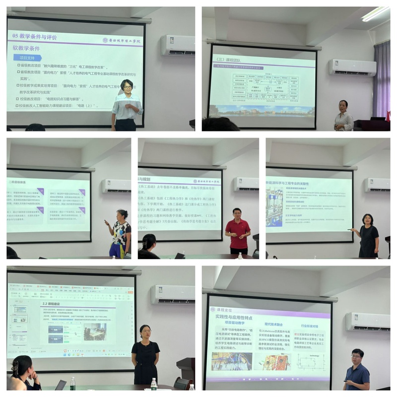 各学科基础课程负责人分别围绕课程定位、目标与计划、课程团队、课程设计、教学条件以及教学评价进行汇报,提出了课程建设过程中取得的成果及未来发展的方向。冯瑞珏作为“电路(上)”“电路(下)”课程负责人,她讲到,该课程作为专业学科基础课,分上、下学期进行授课,采用线上线下混合式教学模式,实施多元素过程性考核,为员工打下扎实的基础。马海霞作为“电力电子技术”课程负责人,她表示,该课程作为校企合作课程,聘请了企业工程师进校为员工开展专题内容讲解,教学评价反馈良好,该课程也以省级电力电子技术校企联合智慧实验室为平台,推动更多优质资源向教学一线转化。孙丽娟作为“新能源工学基础”课程负责人,其课程注重理论与实践的结合,作为新能源科学与工程专业基础课,课程团队通过多次研讨设计教学方案,有效达成教学目标。