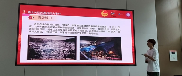 从长征教育基地出发,经过长征历史步道,实践团走进红军长征粤北纪念馆。纪念馆是广东省内唯一以红军长征为主题的纪念馆,再现了1934年中央红军长征过境粤北的历史事件及其文化资源,填补了广东省内长征纪念馆的空白,也将分散在粤北地区的各类红军历史文物、文献纳入加以保护,更好地开展以红军长征为主题的爱国主义教育和党史军史教育。