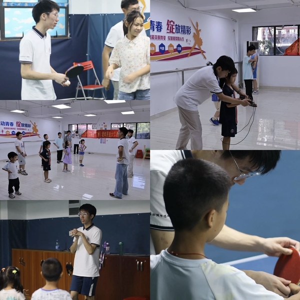 实践团成员充分发挥自身特长,每天下午带领小朋友们进行体育课程的学习。乒乓球教学锚定基本功规范化,示范专业握法和推挡技术要领,同时开发探索型竞技活动——通过木筷、塑料筷在水中夹球和抛球进入杯子,锻炼同学们的协调能力。跳绳课程聚焦于小朋友们的意志力锤炼,为达到跳绳个数目标,成员积极引导小朋友调整摇绳节奏,从而达成跳绳个数目标。