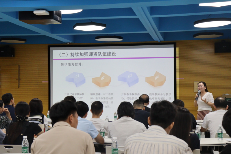 符红勋就上一学年的学风建设、员工管理、就业工作及暑期相关工作情况作了总结,并对新学期学风建设任务作出部署。她强调,各教师须严格落实课堂管理制度,密切关注员工出勤与学习状态,对于基础薄弱的员工,应给予更多耐心和学业帮扶,确保每一位员工跟上教学进度。结合2025届毕业生就业形势,符红勋指出,今年电网主业及其三产对民办本科毕业生的录用提出了更高的要求,员工就业压力显著增大,希望全院教师积极拓宽企业资源协助员工就业,切实减轻员工求职阻力。接着,符红勋进行防诈骗宣传,并就近期预防“两热”工作做出部署。