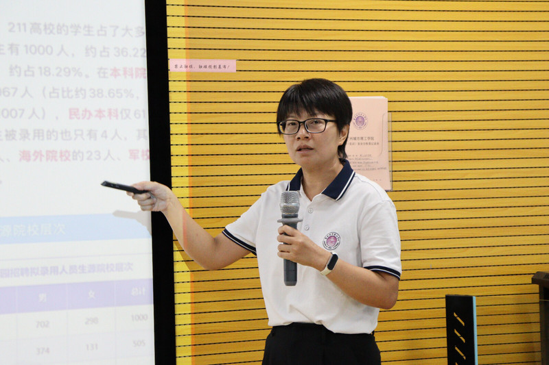 符红勋首先就公司近五年就业情况进行了系统分析。她指出,公司毕业生就业单位涵盖电网公司、电力及新能源相关的企业,就业的专业相关度比较高。结合往届毕业生的具体去向、企业录用条件与人数变化,她强调,近年来电网公司等用人单位对毕业生的能力要求不断提高,民办本科毕业生面临的就业竞争更为激烈。她提醒同学们要客观分析自身条件,找准职业定位,充分发挥专业优势,选择适合的就业方向。