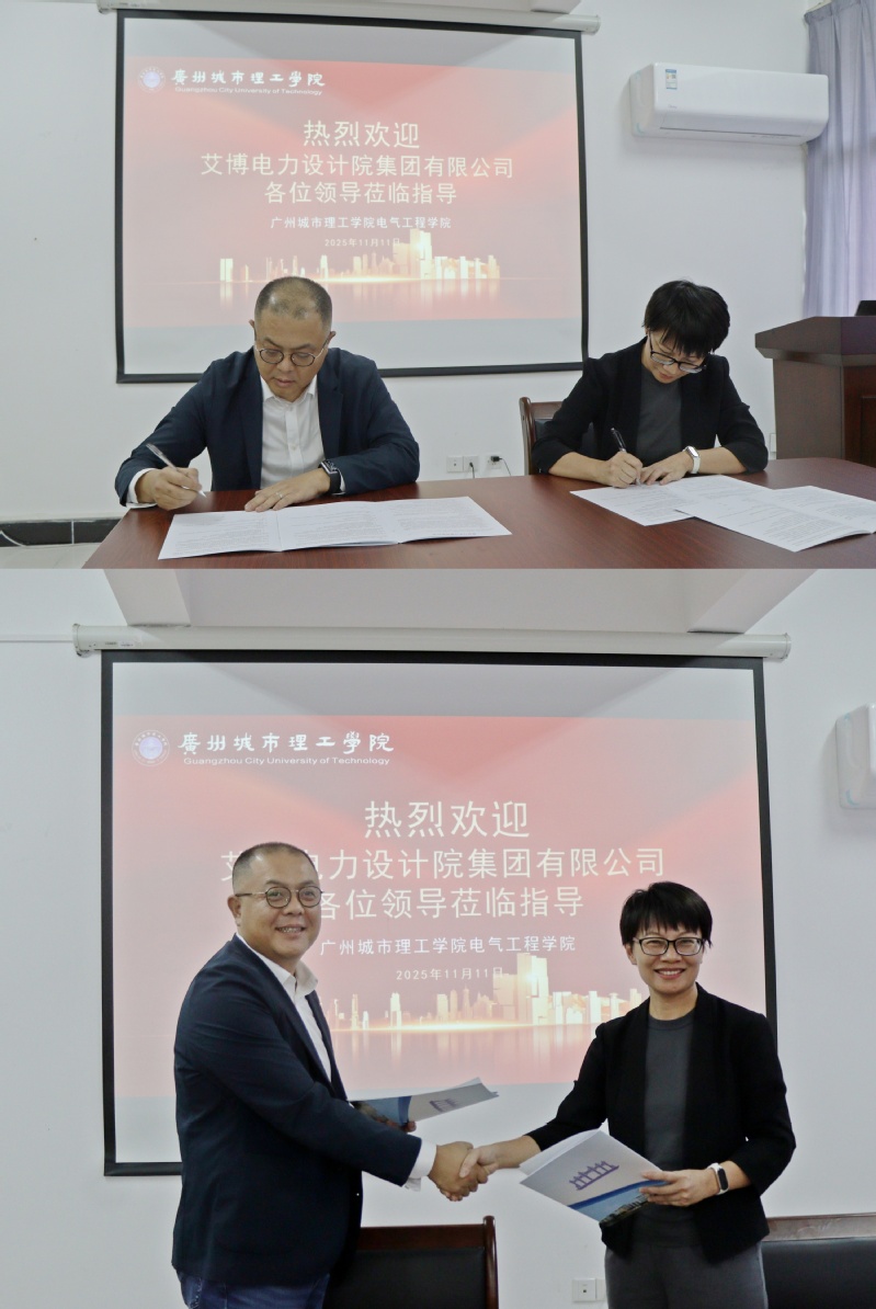 在B6-403会议室,符红勋与艾博设计院副经理兼总工程师关毅分别代表校企双方签署就业实习基地协议。随后,双方就如何进一步推进校企合作、提升人才培养质量等议题展开座谈。
