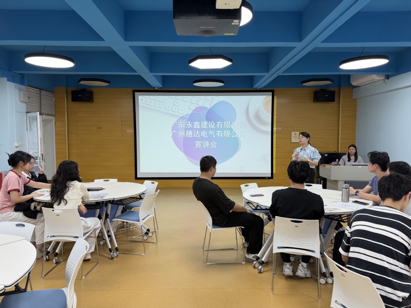 下午,广东永鑫建设公司在B7-402教室面向公司2026届毕业生举办了宣讲会。宣讲会现场,企业代表人力资源负责人郑宇敏经理详细介绍了企业发展历程、业务领域以及人才培养模式,展示了公司在工程建设方面的实力与成果。