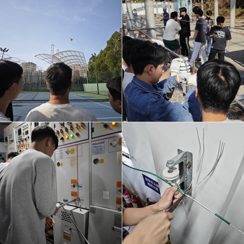 在户外实操训练阶段,全体师生前往户外电力系统实训基地。南方电网工程师现场讲解并指导员工开展多项实操项目,包括10kV挂接地线、10kV跌落式开关停送电操作、更换低压开关、开关柜停送电操作、0.4kV带电接火以及绝缘子绑扎等。2022级电气4班陈泳霖在完成绝缘子绑扎训练后分享道:“电气知识原本较为抽象,但通过动手实践,一切都变得具体而清晰。理论和实操就像人的两条腿,只有协同配合,才能走得更稳、更远。”