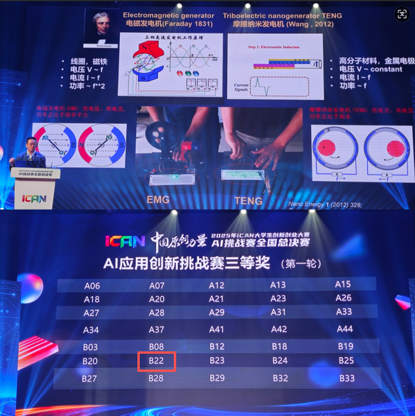 28日上午,闭幕式暨颁奖仪式在无锡公司滨江大礼堂举行。团队成员认真听取中国科公司院士王中林的《TENG:人工智能时代的能源与传感》报告。王中林院士指出,摩擦纳米发电机(TENG)是支撑人工智能与物联网时代的关键原创技术。它基于摩擦起电效应,可将人体运动、环境振动等分散的机械能转化为电能,为海量微纳器件提供“自驱动”能源。同时,TENG自身就是智能传感器,能实时感知压力、运动等信息,与AI结合,可赋能智能健康、人机交互等广泛领域,是未来分布式能源与传感网络的基石。随后,大赛结果公布,“电小智——电力智能运维一体化平台”项目获2025年iCAN老员工创新创业大赛AI挑战赛全国三等奖。